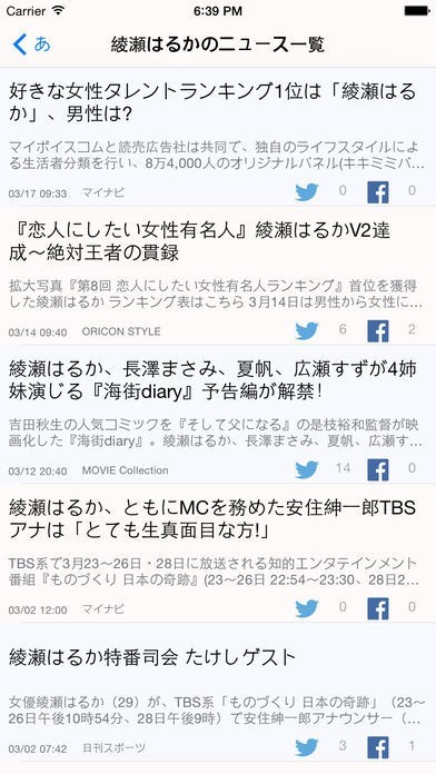 App Storeより引用芸能人ごとの芸能ニュースを一気にまとめて読めるニュースアプリです。