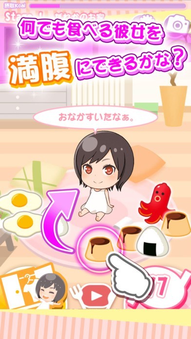 「【はらぺこパズル】ごはんに恋をした」は、色々なものを食べさせて、食べ物をなぞって消していくゲームになっております。ウインナーやたまご、おにぎりなど女の子の胃の中にある同じ食べ物を繋ぎ合わせて、消化させていきます。アプリのデザインもPOPで可愛らしい女の子なので癒し要素もあります。プレイしているうちに、女の子の新しいコスチュームをゲットできるので、自分好みの服装にしていくことも可能です。何でもパクパク食べる彼女に母性も出てきます。