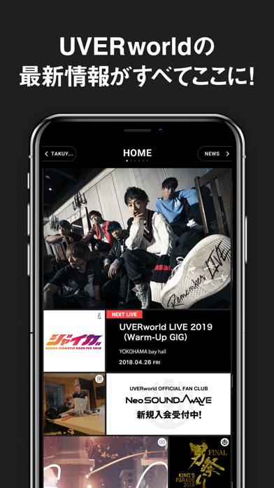App Storeより引用UVERworldの最新情報をチェックしたり、ファンクラブ会員の方はチケットの先行受付やメンバーブログ、メンバー出演ラジオ、スタッフブログなど様々なサービスがお楽しみいただけます。