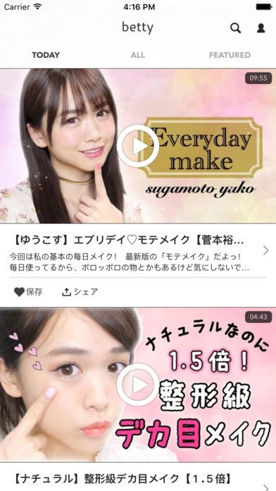 App Storeより引用betty[ベッティー]はキレイになれるコスメ・美容情報がいっぱい見れるアプリです。気になる動画を見つけたらハートマークボタンをタップして保存しよう!コメント欄にはあなたの感想や質問かけます。どんどんコメントも投稿しよう!