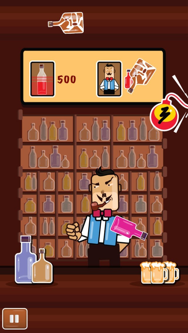 1つのビンを何回も!床に落ちる前に連続タップで壊そう!