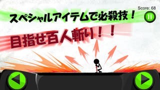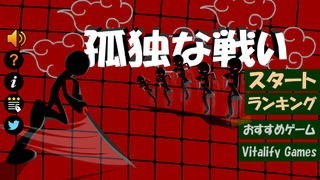 「孤独な戦い」は、棒人間を操作して次々と現れる敵を倒していくプチアクションゲームです。画面の下部に左右にマークがあるのでそれをタップして左右に操作していきます。左をタップすれば左に移動しつつ敵を斬り、右をタップすれば右に移動しつつ敵を斬ります。最初は左右からの敵だけですがすすんでいくにつれ、敵は上からもやってくるので注意です。敵の棒人間だけでなく爆弾も落ちてくるので、素早く移動してすぐさま斬ってしまいましょう。爆弾を放置しておくと爆発してゲームオーバーとなってしまいます。稀にもらえるアイテムを使うと敵を一掃する強烈な技をつかうこともできます。1太刀でもあびればゲームオーバーとなるので、うまく避けながらハイスコアを目指すゲームです。