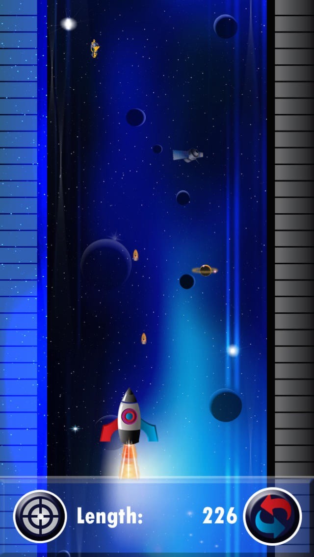 ブラックホールに吸い込まれないようにターンボタンをタップして進行方向を調整!