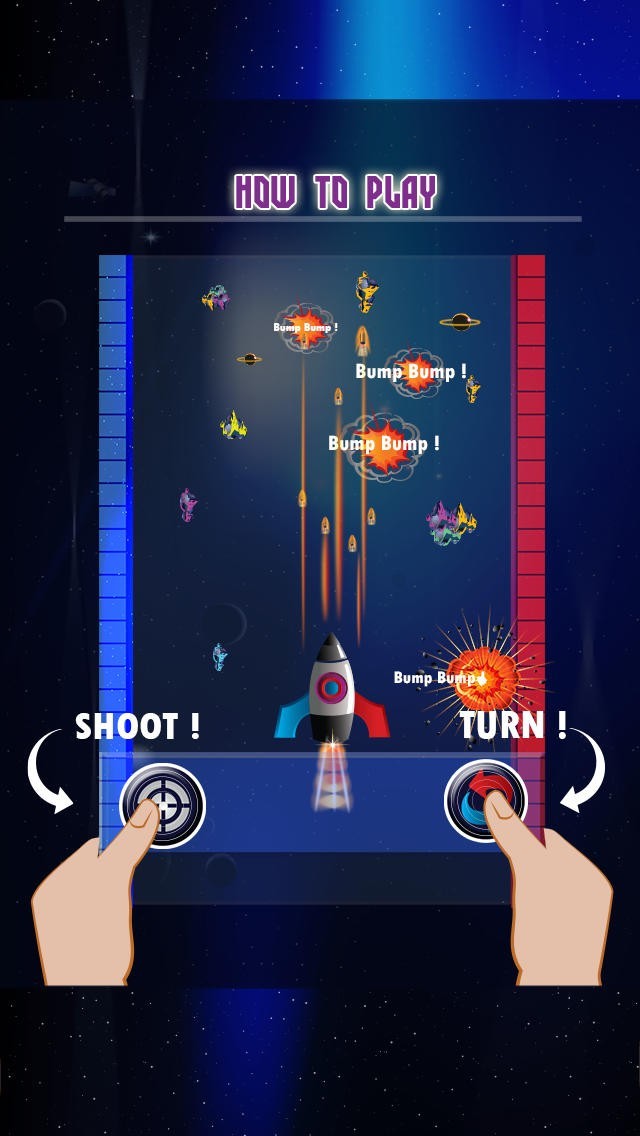左右のボタンをタップして前進とミサイル発射を行うことができる!