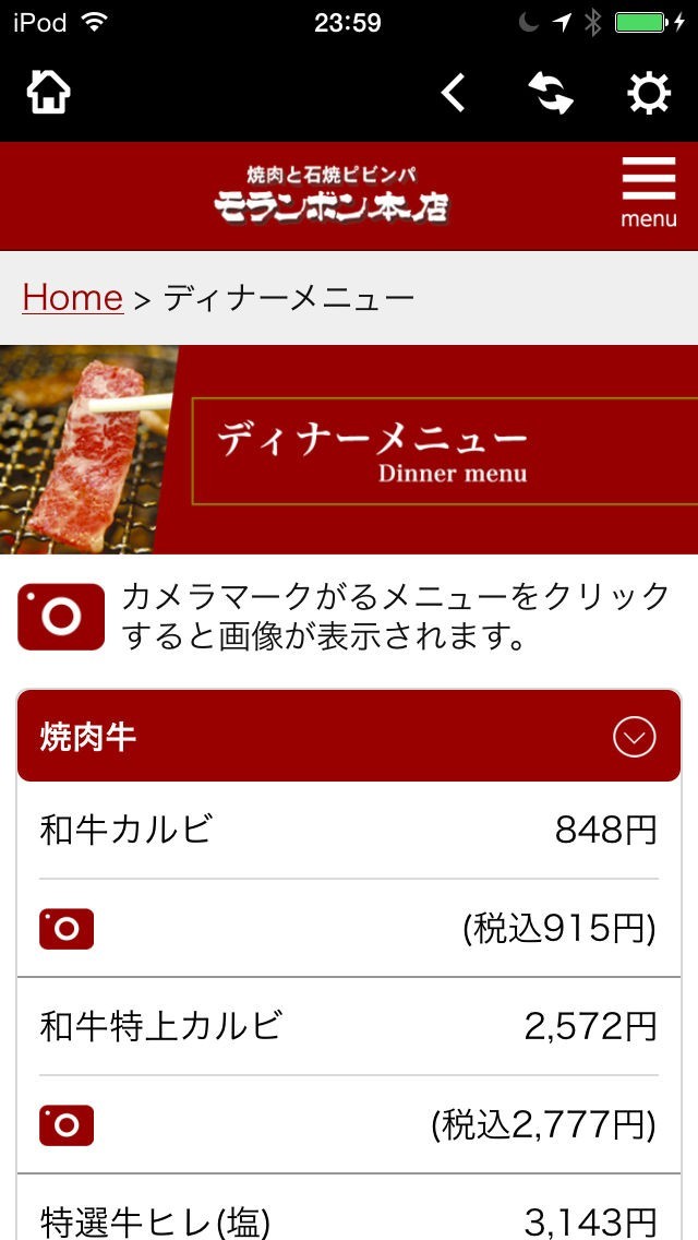 モランボン本店メニューアプリ