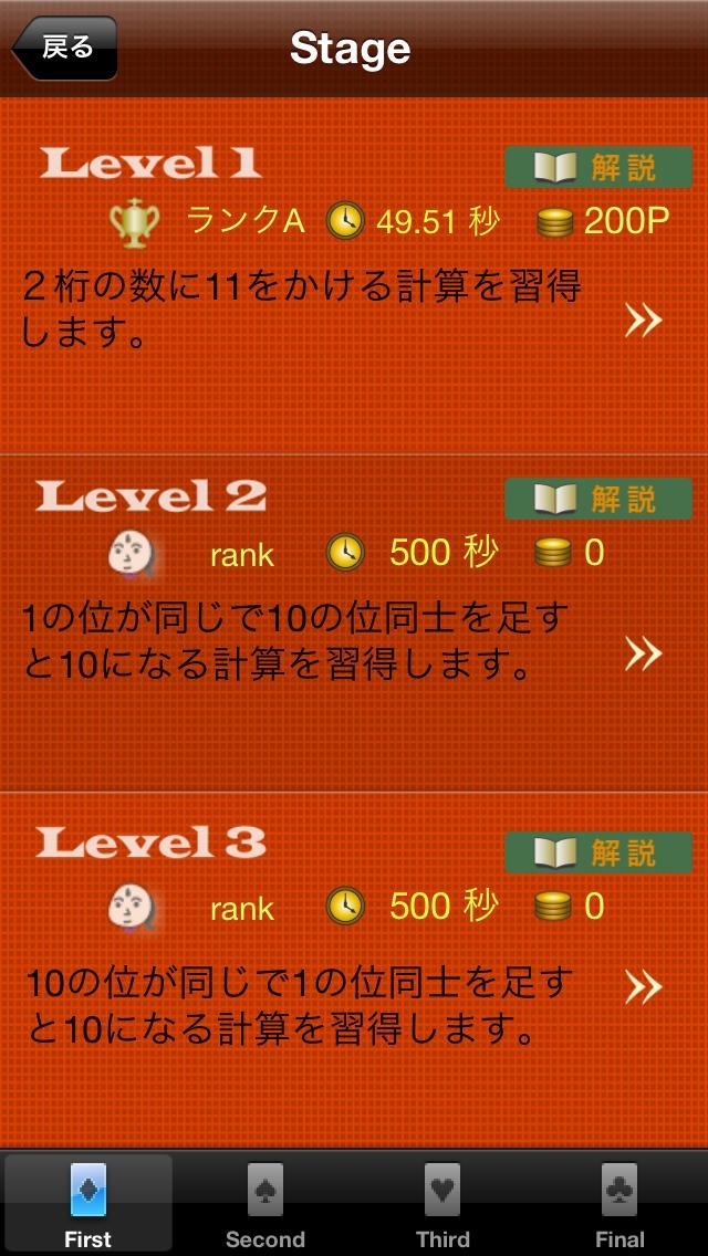 2,レベル別タイムチャレンジ