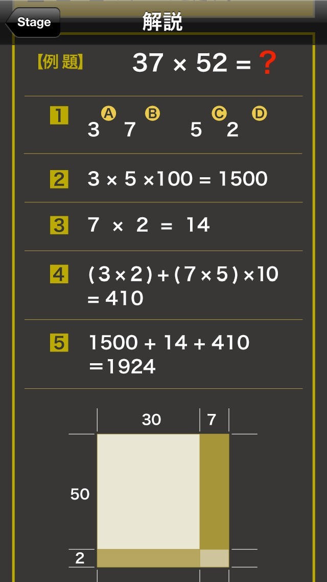 2けたかけ算のインド式計算をマスターするためのアプリです。