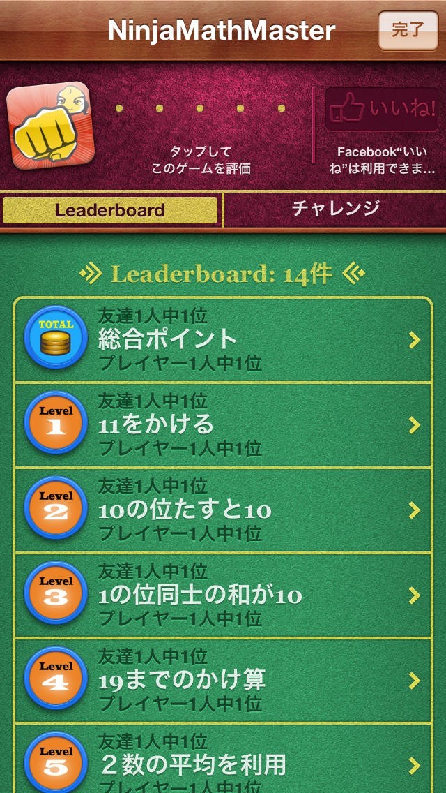 どのレベルの計算でも20問最後まで解けると、1ポイントが加算されます。時間制限はありません。