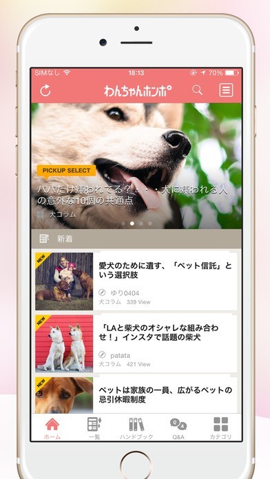 犬を飼い始めたいけど犬について全然わからない、愛犬の健康状態やしつけに悩んでいる、等々わんちゃんに関する悩みって色々ありますよね。まさにそんな方にオススメであるのが「犬のニュースや飼い方の情報をまとめ読み -わんちゃんホンポ-」です。横スライドでメニューを切り替えることで、自分が見たいカテゴリの記事だけをずらっと眺めることが可能。ためになるニュースや愛犬の健康状態、しつけのハウツー、等のお役立ち情報、わんちゃんの可愛い姿をとらえたおもしろ動画や感動エピソード等々、カテゴリごとに盛り沢山の内容が毎日更新されています。また、アプリ内の掲示板を利用すれば、わんちゃんの飼い主さん同士で質問しあったり回答しあったりして疑問を解決することもできます。