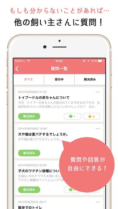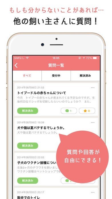 「わんちゃんホンポ」は犬に関する情報が満載のアプリです。ニュースや犬種にかんする記事を更新、動画や写真つきで楽しく閲覧できます。愛犬の病気やしつけといった役立つ情報がもりだくさん、ペットと泊まれるホテルといったお役立ち情報もトータルで紹介しています。記事はジャンルごとに細かくカテゴライズしているため、求めている情報をさがしやすいのが利点です。さらに、愛犬の悩みを他の飼い主さんに相談できるQ&Aをつかえば、すぐに答えがもらえます。