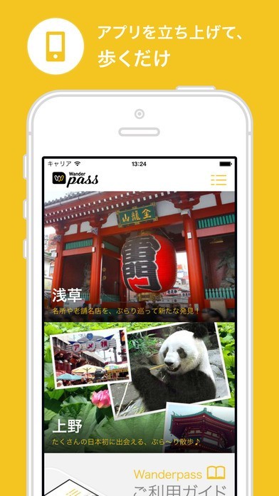 App Storeより引用Wanderpass(ワンダーパス)は、GPS連動音声ガイドサービスです。美術館や博物館の音声ガイドのように、街中のおすすめスポット情報を、音声で楽しめるサービスです。