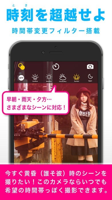 無料で使える「時間帯変更フィルター」を使えば、撮影時間を問わずお好みの時間帯っぽい写真を撮ることができます!