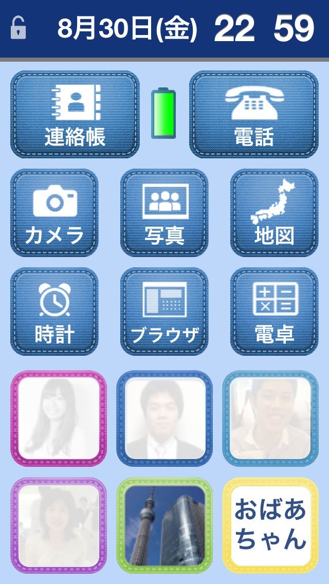 ややこしいスマートフォンの操作もこのアプリ一つで解決します。画面に表示された連絡帳や写真などのメニューを押すだけですぐにその機能を使用できます。また、大きな文字で表示されるためご年配の方でも見間違えにくくなっております。