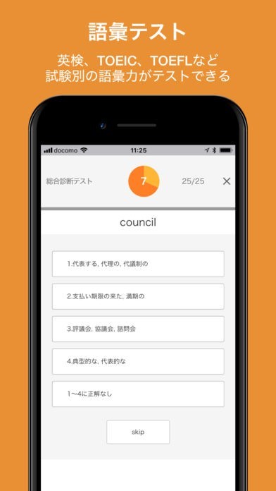 「weblio」は語彙力をチェックできるテストを多数提供しています。TOEIC、TOEFL、英検、大学受験などレベル別に受けられる語彙力テストが充実。アプリでもウェブサイトでも無料で利用できます。