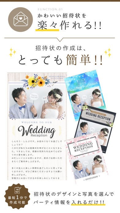 画面に沿って、デザインを選び、写真とパーティ情報を登録するだけで招待状は完成!