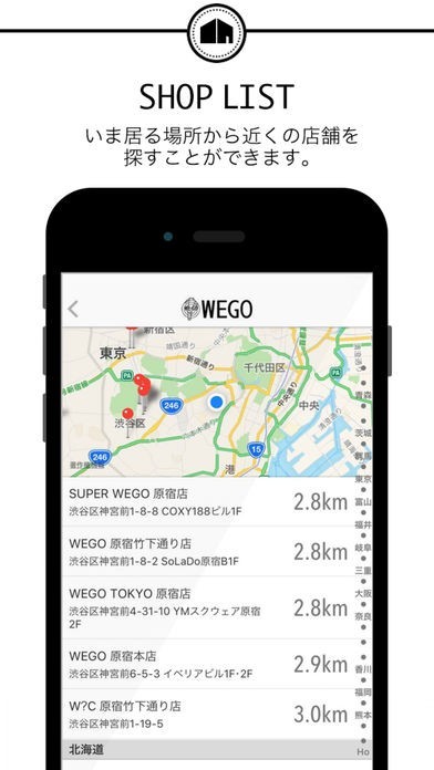 GPS機能を使って、最寄りの店舗を検索することが可能