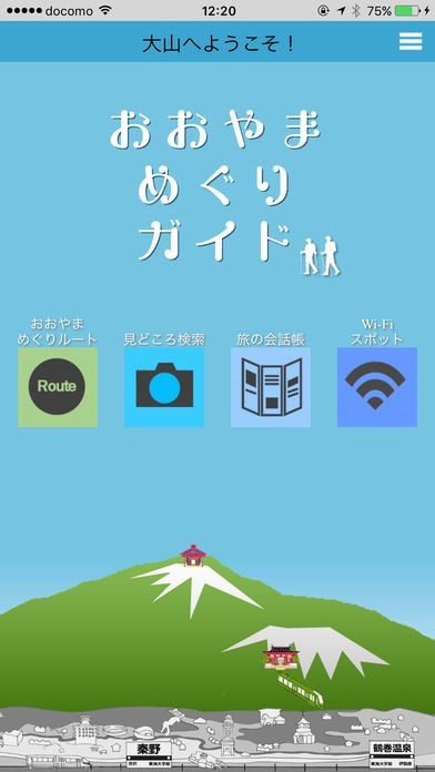 App Storeより引用「おおやまめぐりガイド」は、伊勢原市、秦野市、厚木市の3市合同開発の大山観光アプリです。大山地域についての紹介をはじめ、観光施設等の情報を提供するとともに、ナビゲーションサービスを行います。