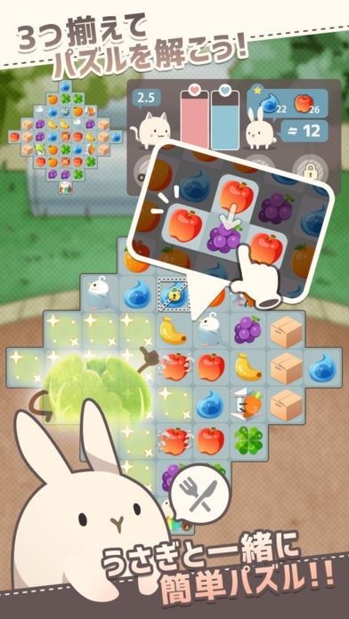 腹減りうさぎのためにパズルでいろんなごはんを捕食して、並み居るライバルをなぎ倒し、月への道を模索しましょう!