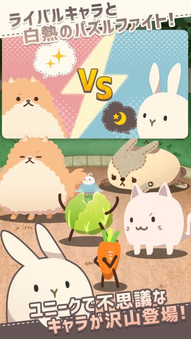 うさぎの仲間やライバルと白熱パズルファイト!相手より先にクリアしよう。