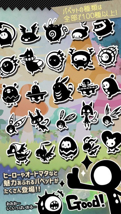モノクロの世界を舞台に、失くした色と記憶を探すために旅をするアクションRPGです。登場キャラや敵などは影で表現されているどこか懐かしく可愛らしい世界観を、パペッターとなりパペットヒーローを操りながら、自動で戦ってくれるオートマタと共に敵を倒していきます。基本操作は簡単で、左右にパペットヒーローを割り振って敵を倒し、手に入れたお金を使って様々なパロメーターを強化して育成していきます。単純な操作ながらもコンボなどのアクションを楽しむことができます。攻略のポイントとなるのはオートマタの育成です。オートマタは一定レベルまで強化することでスキルを覚えることができるので、1体を集中してレベルを上げるのがオススメです。