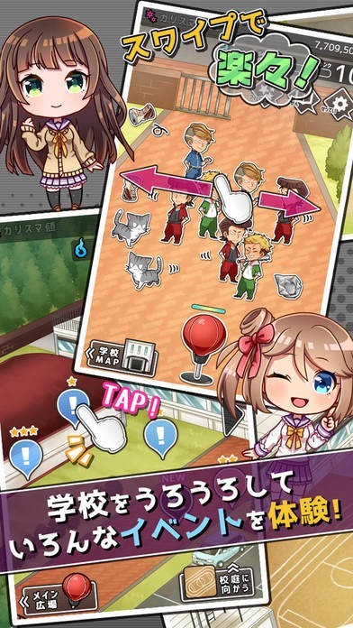 誰もが妄想した中二病満載のストーリーが楽しめる!スワイプを駆使して経験値を稼ぎ、学園の危機を救おう!