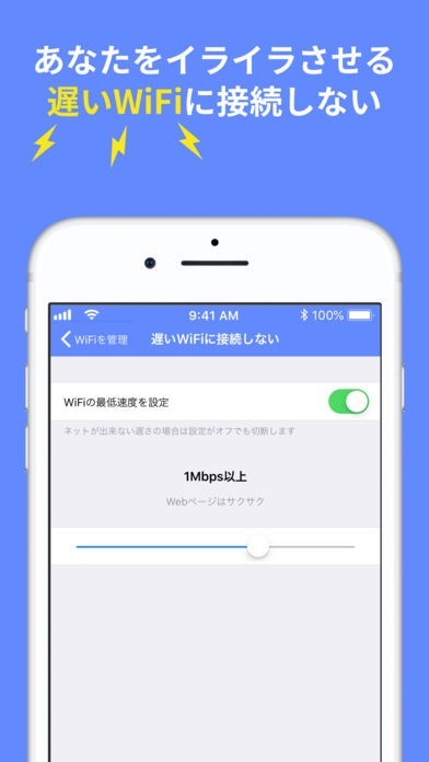より快適に通信するために、低速度Wi-Fiのブロック機能搭載!