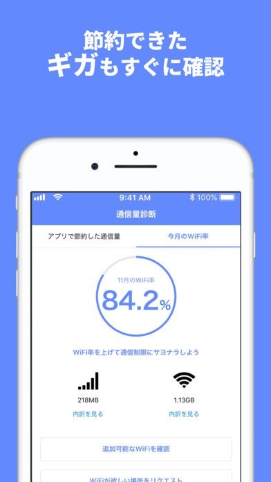 使用時にベストなフリーWi-Fiに接続してくれるので、通信量を節約できる。