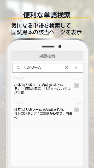 国試黒本の中から、該当する単語を検索してページを表示することができます!