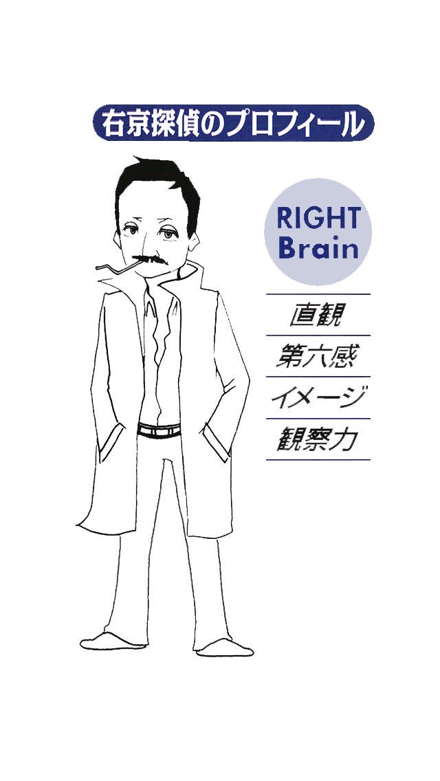 視覚的情報を頼りに、右脳的アプローチで解決していく右京探偵の事件簿。