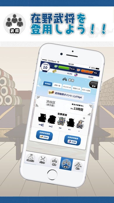 App Storeより引用きみの街にいる三国志の在野武将を見つけて登用!