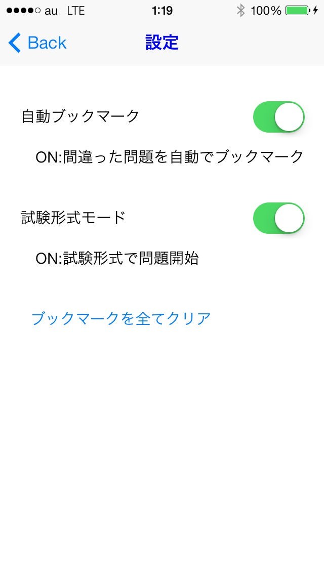 ※設定画面より、間違った問題を自動でブックマークに保存できます。