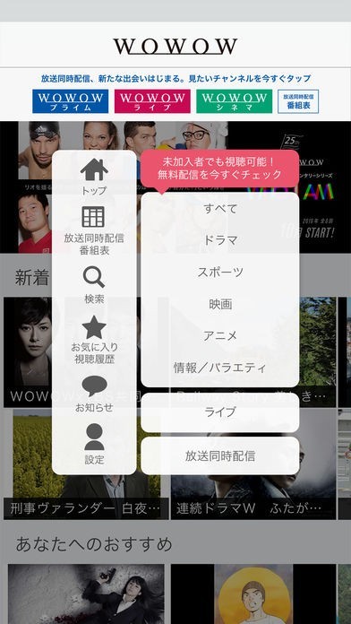 WOWOW加入者は無料で見逃した番組を閲覧することが可能なアプリ