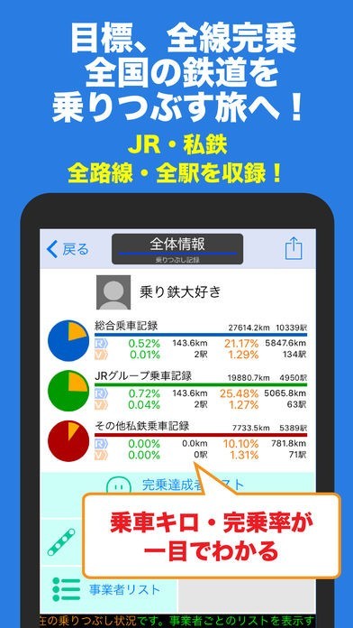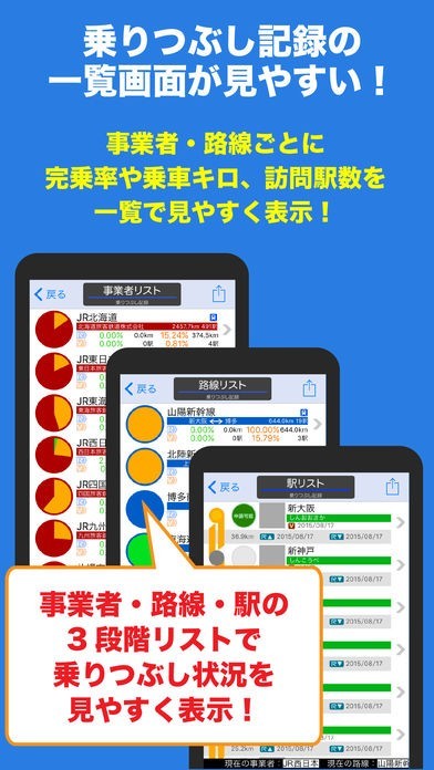 これまで乗車した路線・駅の記録がグラフィカルで一目で振り返られるのが良い。