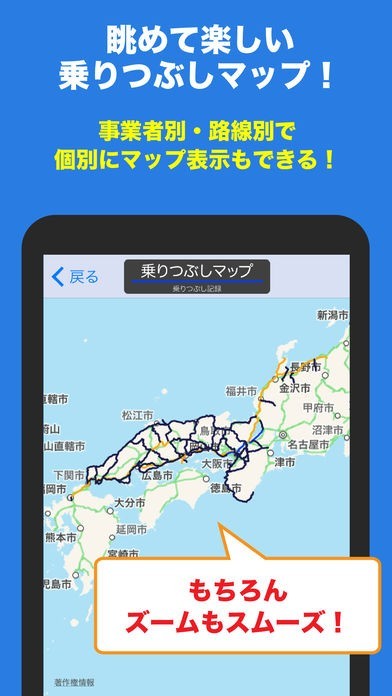 自分が全国の鉄道を乗りつぶした記録を地図に残せる