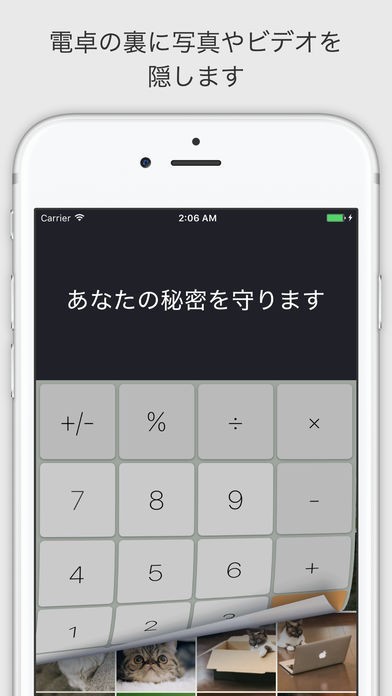 人には見られたくない写真やビデオなどを管理することができます。アプリ内で動画の再生までできるので、便利です。見た目は電卓のアイコンなので、カモフラージュすることができます。