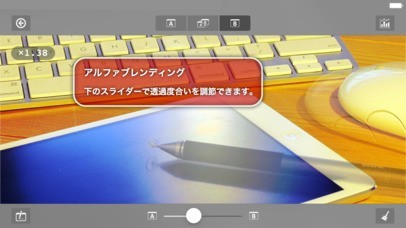 「PixelComp」は2つの画像の違いを数値で表すことができるアプリです。さまざまな画像ファイルに対応、ピクセルを数えて数字とグラフを表示することで、色の濃淡から割合まで詳細な違いがわかります。2つの画像を重ねてみたり、合成してみたり、楽しみ方は他にも。完成した画像には、手書きで文字やイラストを書くことか可能です。手振れ補正ややりなおしといった機能もあるので、本格的なお絵描きもおこなえます。完成した画像は保存が可能、 Dropboxやメールへの転送もできます。