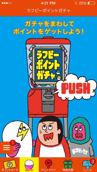 ガチャ機能があり、毎日一回だけ回すとポイントがもらえる