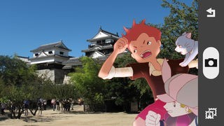 すると、アニメの登場人物が松山市内を駆け巡る様子が、スマホのカメラを使って実際の風景と重なり合って見ることができます。