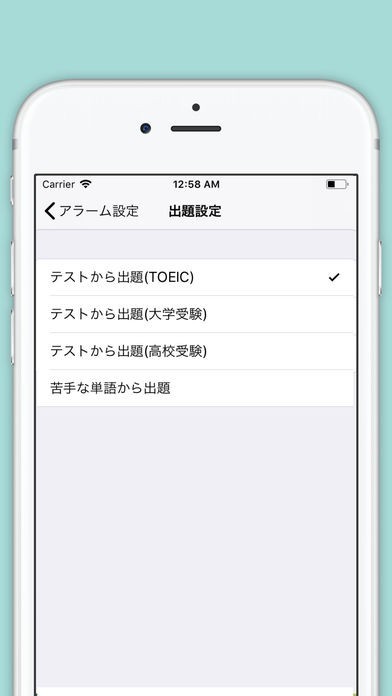 目覚ましアラームが英語単語クイズを正解しないと止まらないという不思議な学習アプリです。事前に出題問題数と出題レベル、起きる時間を設定するだけで翌朝目覚ましアラームと一緒に英単語クイズが始まります。無料で使うことができ、時間通りに起きれると共に日々の英語学習が習慣にもなってしまう一石二鳥のアプリです。単語テストは「高校受験・大学受験・TOEICの英単語」から選択できるので学生やTOEICを控えた社会人にもぴったしの学習アプリです。