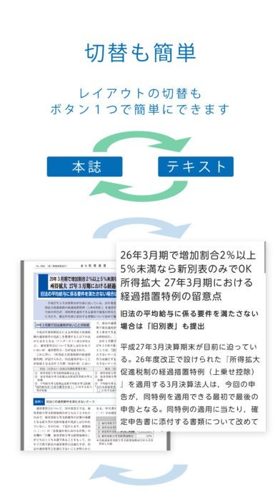 記事のダウンロードに対応しているので、オフライン環境でもじっくりと記事が確認出来るようになっています。「週刊税務通信」の最新号を素早くチェックしていけるのも利点ですね。