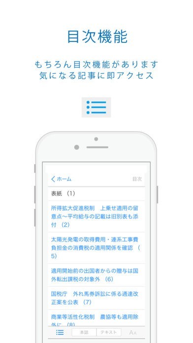 税務に関する情報が幅広く掲載されていて、最新のニュースも素早く把握出来るようになっています。目次機能が用意されているので、指定したページにも簡単にアクセス出来ますよ。