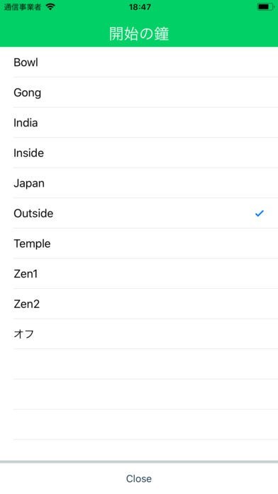 「瞑想たいむ+」では、素晴らしいたくさんの鐘の音を、開始、終了、そして終了の予告通知に使用できます。