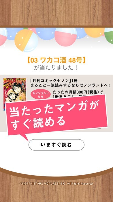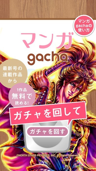 1日1回、ガチャを回して最新作の大人気漫画を読む事が出来るアプリ!