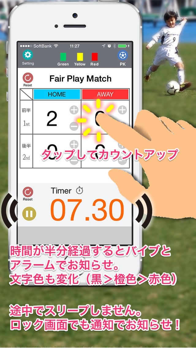 通常、サッカーをするときには審判役を複数準備してスコアボードとタイマーを別々に管理する必要があります。「スコアボード&タイマー for Soccor」では、1つのアプリで全ての管理ができますので審判役を1人だけに絞ることができます。