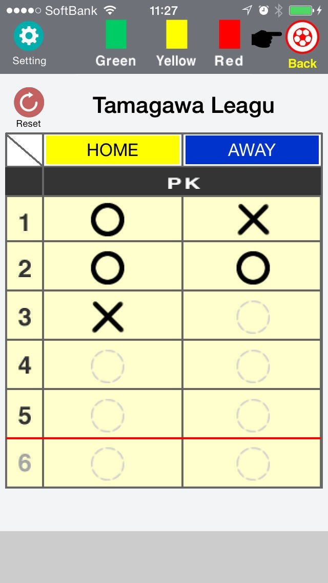 「スコアボード&タイマー for Soccor」では、設定した時間の半分が経過すると自動でバイブとアラームで知らせてくれます。PK戦にも対応していますので、PK戦の時間設定にも簡単にこの機能を応用できます。