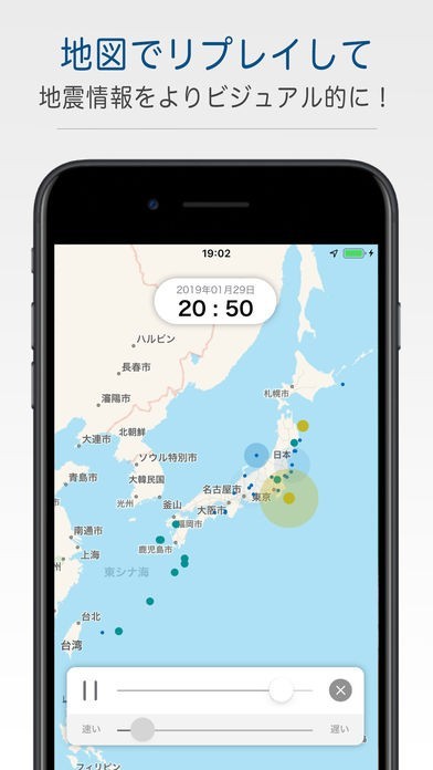 4. 地震の発生をリプレイでき、情報をよりビジュアル的に。