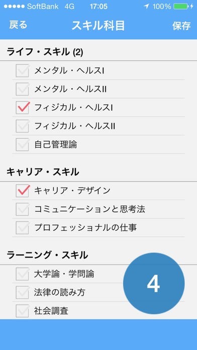 学部と学科を選択すると、その学科に沿った授業が出てくるので、卒業のための自分の管理としてぜひ使ってみてください。