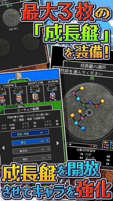 「RPG ドラゴンラピス」はレトロなグラフィックやBGMの本格的なRPGをスマートフォンで楽しむことができるアプリになります。主人公である勇者やオッサン、オタク娘などの仲間キャラクターを成長盤システムで自由に育成することができるようになっているほか、転職でスキルを覚えさせることが可能となっています。
