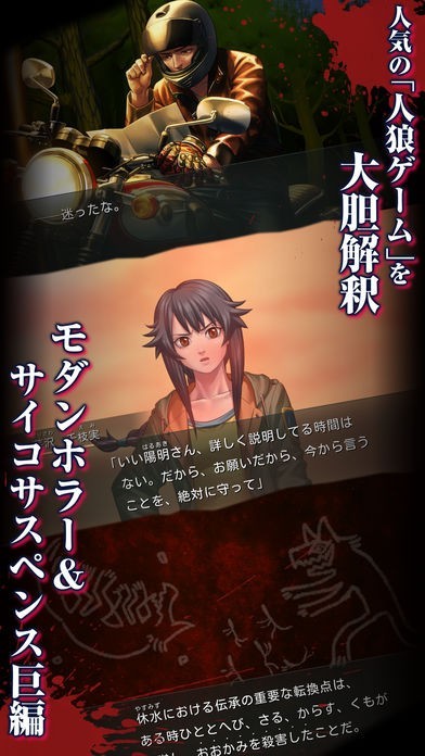 大人気の人狼ゲームを大胆に解釈してモダンホラーテイストを加えて作り上げられた本格的なアドベンチャーストーリーをiPhoneで楽しむことができるようになっています。