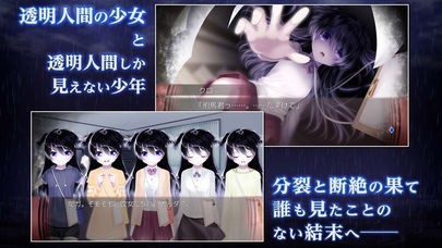 透明人間であるヒロインのクロと、透明人間「しか」見えない豹馬。二人を中心として、残酷な運命が展開されます。プレイし終わった頃にはヒロインのクロのことがいとおしくて仕方ないでしょう。